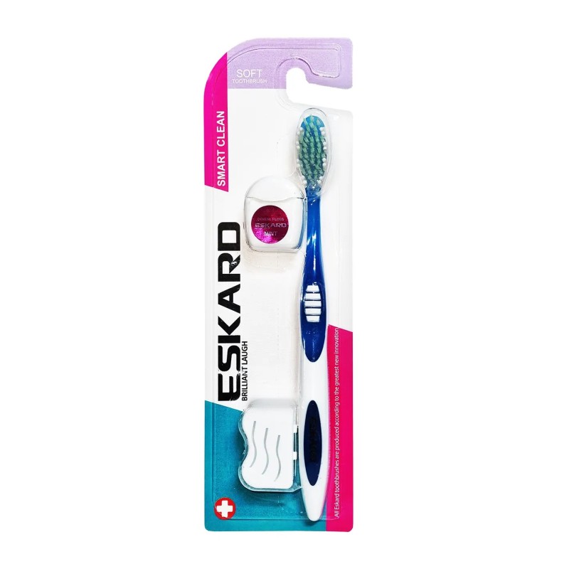 مسواک اسکارد درپوش دار برس نرم مدل Smart Clean کد 102 همراه با نخ دندان